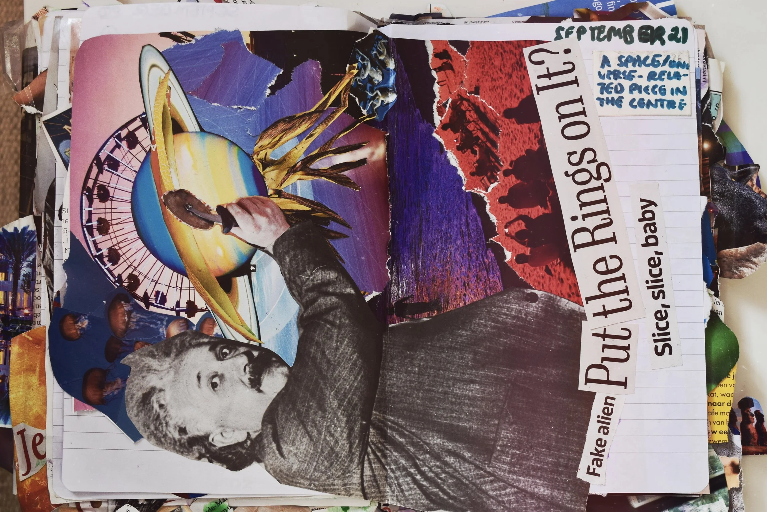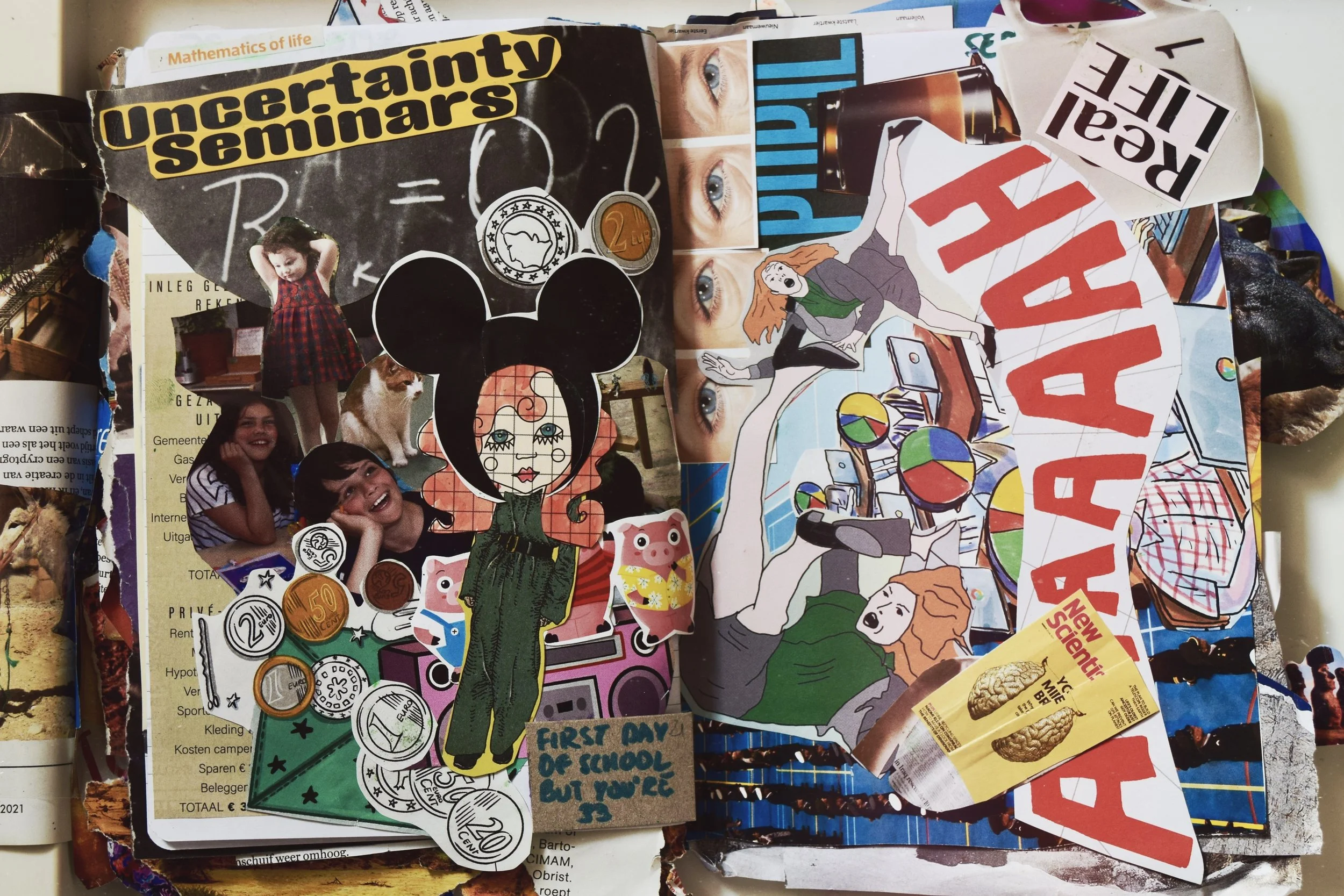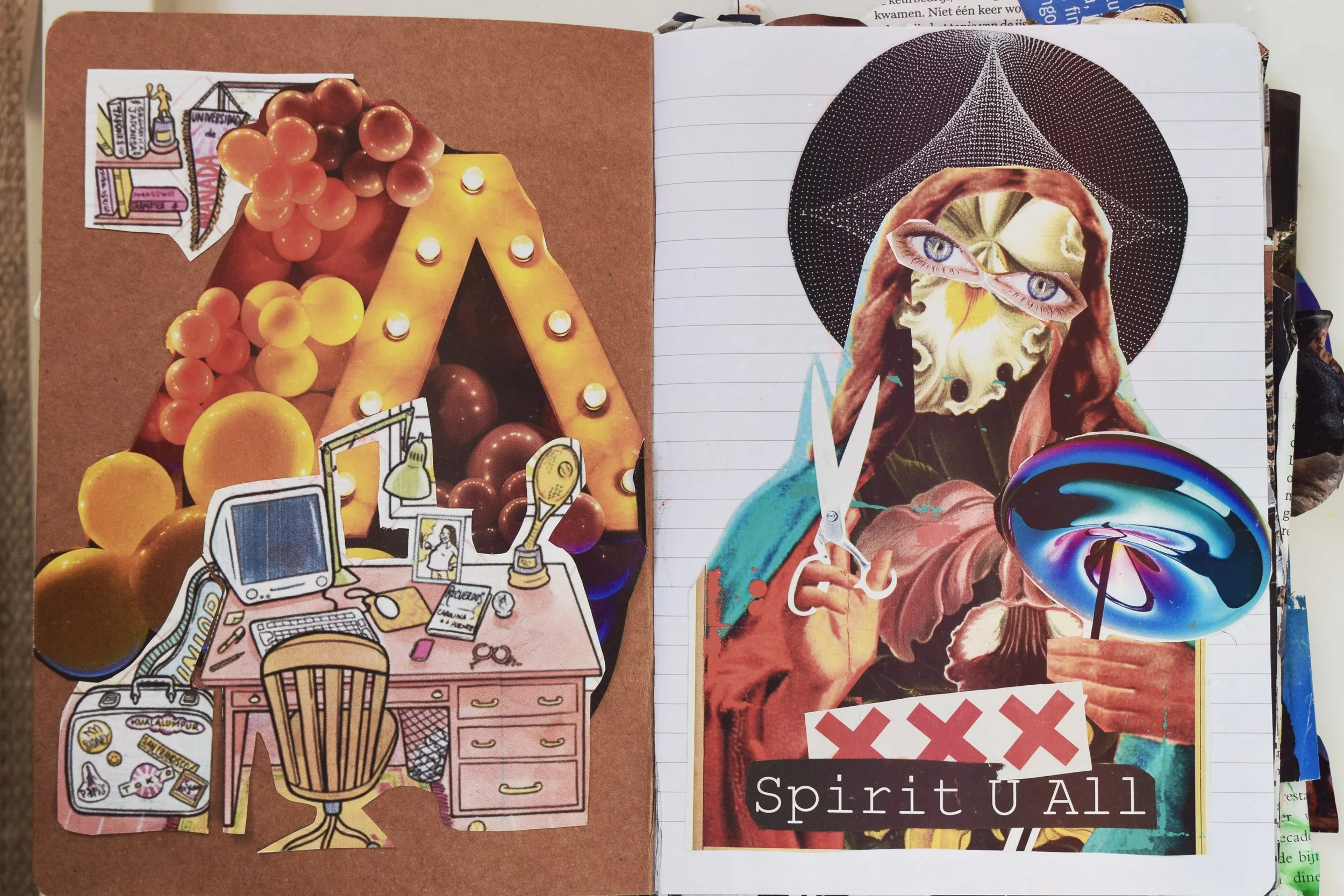 This page is an archive of those pieces, shared as they are. Even the scanning process didn’t go as planned: I went to the library to get them scanned properly, but after those files got corrupted (twice!), I took it as a sign to keep things candid and just use my phone. I think you’d agree that the photos kept these collages more vivid and expressive — tactile, even.