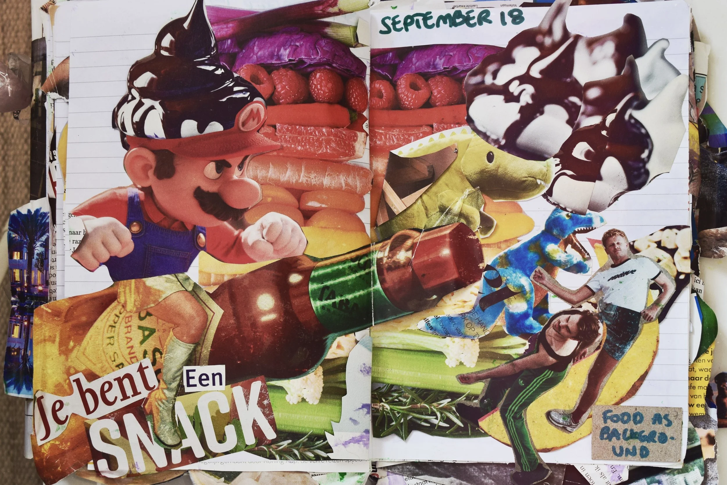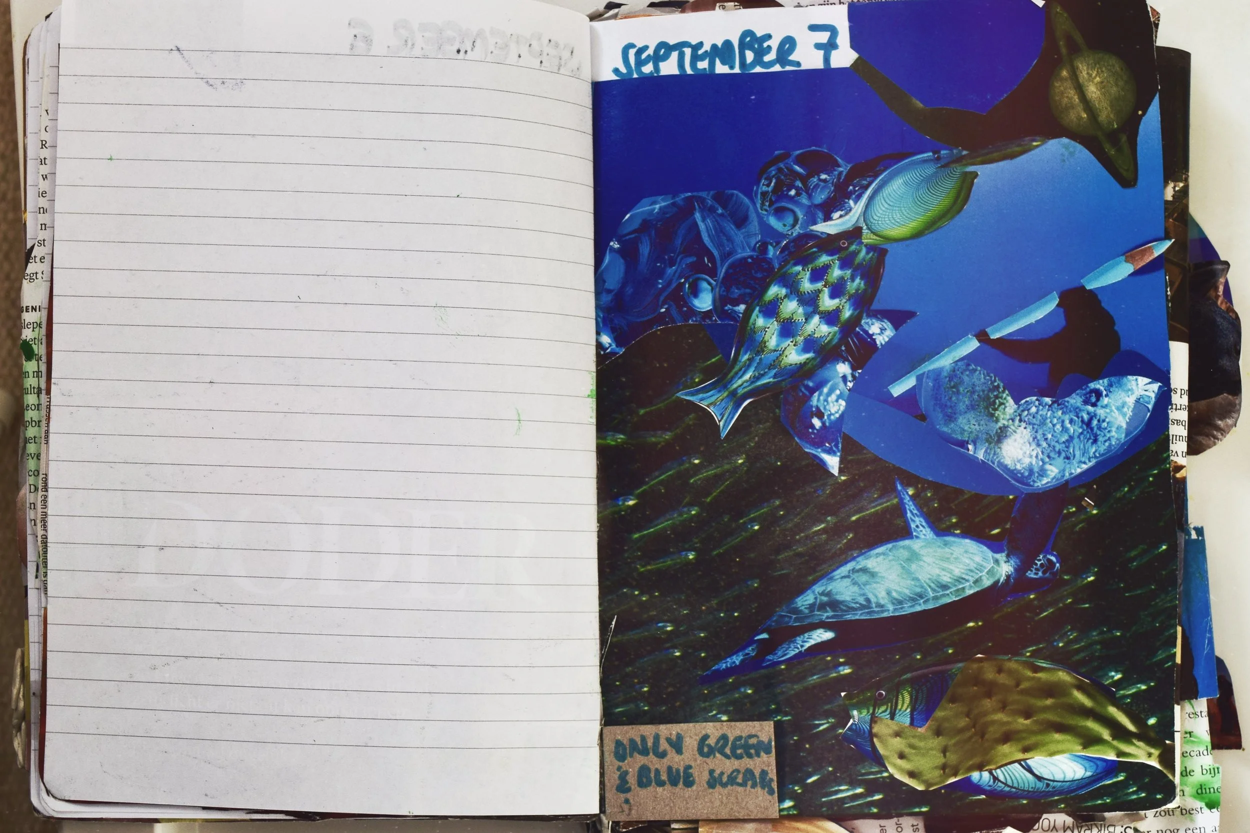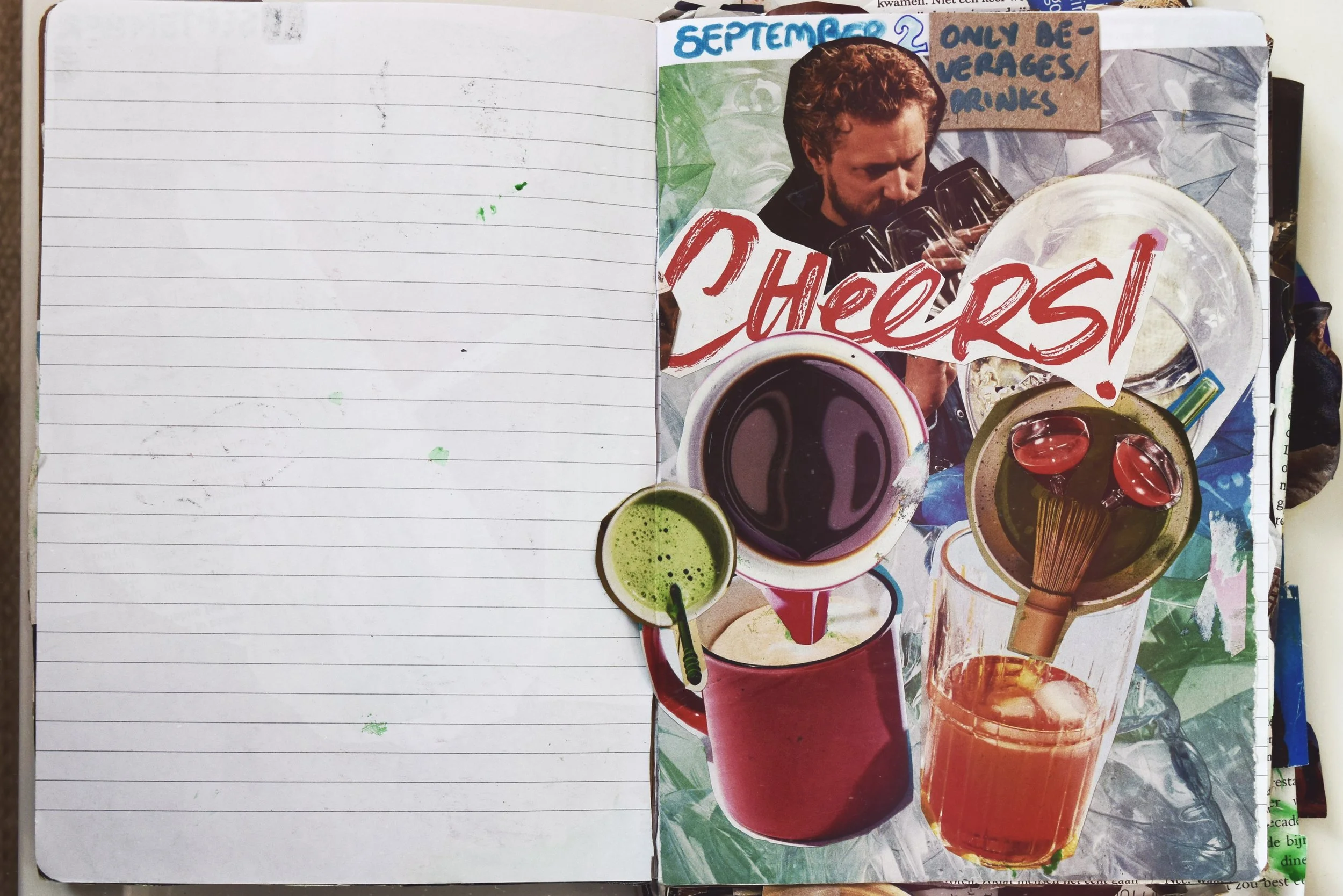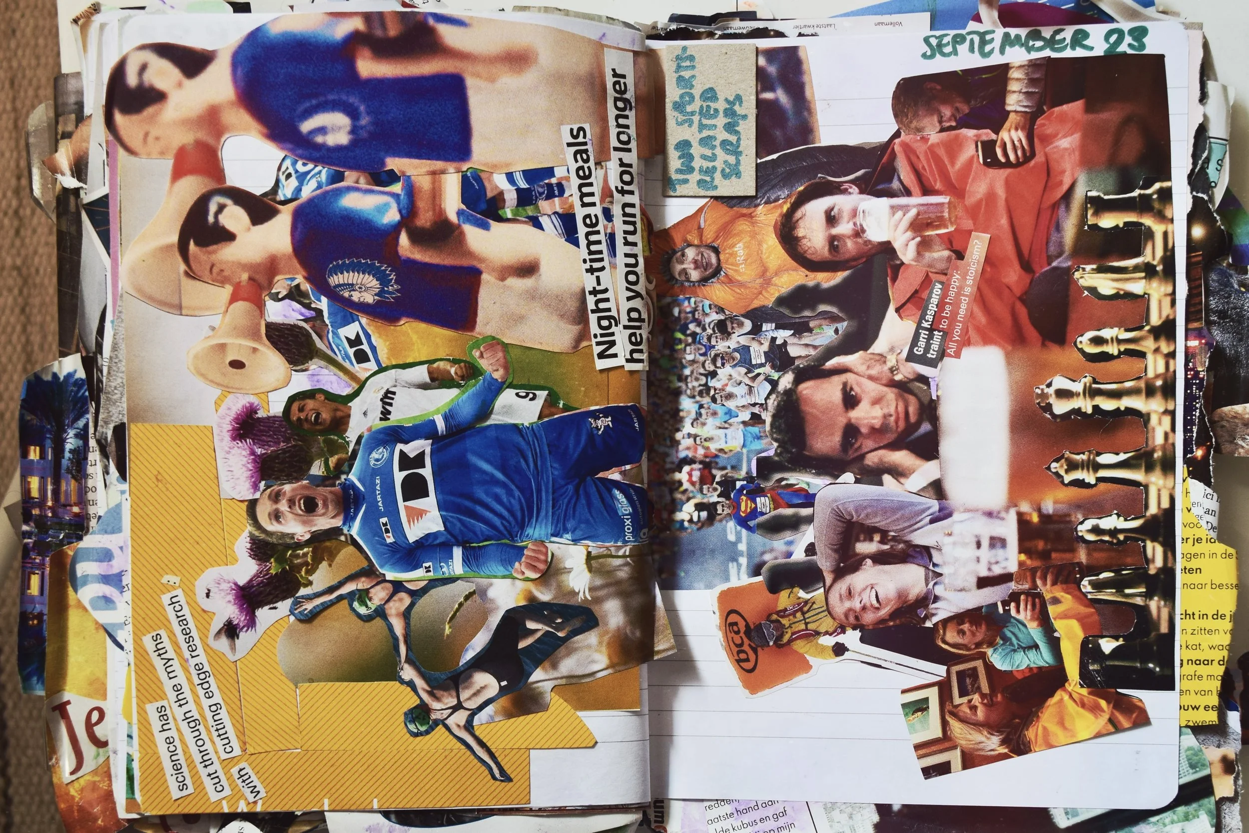 Each day, I’d pull a prompt — making it part creative challenge, part scavenger hunt, part visual diary of my life. Some days it asked me to use only pieces with numbers or of the same colour; other days I’d need to reflect on my summer or create a dialogue using scraps in different languages. Sometimes it made perfect sense, and I had a clear vision right away. Other times, I had no clue what I was doing — even when the collage was done. Some pages came easily; others didn’t want to exist at all.